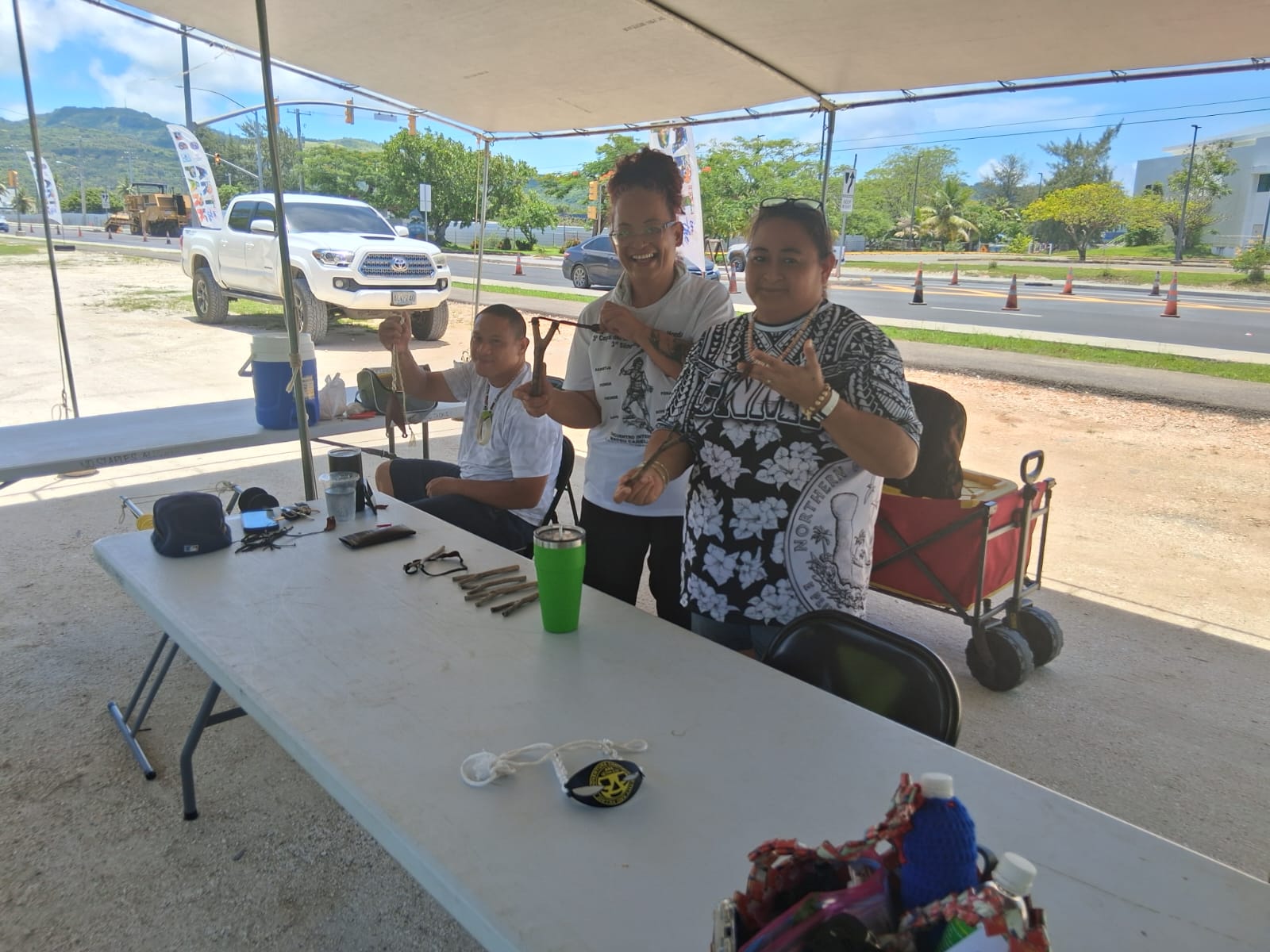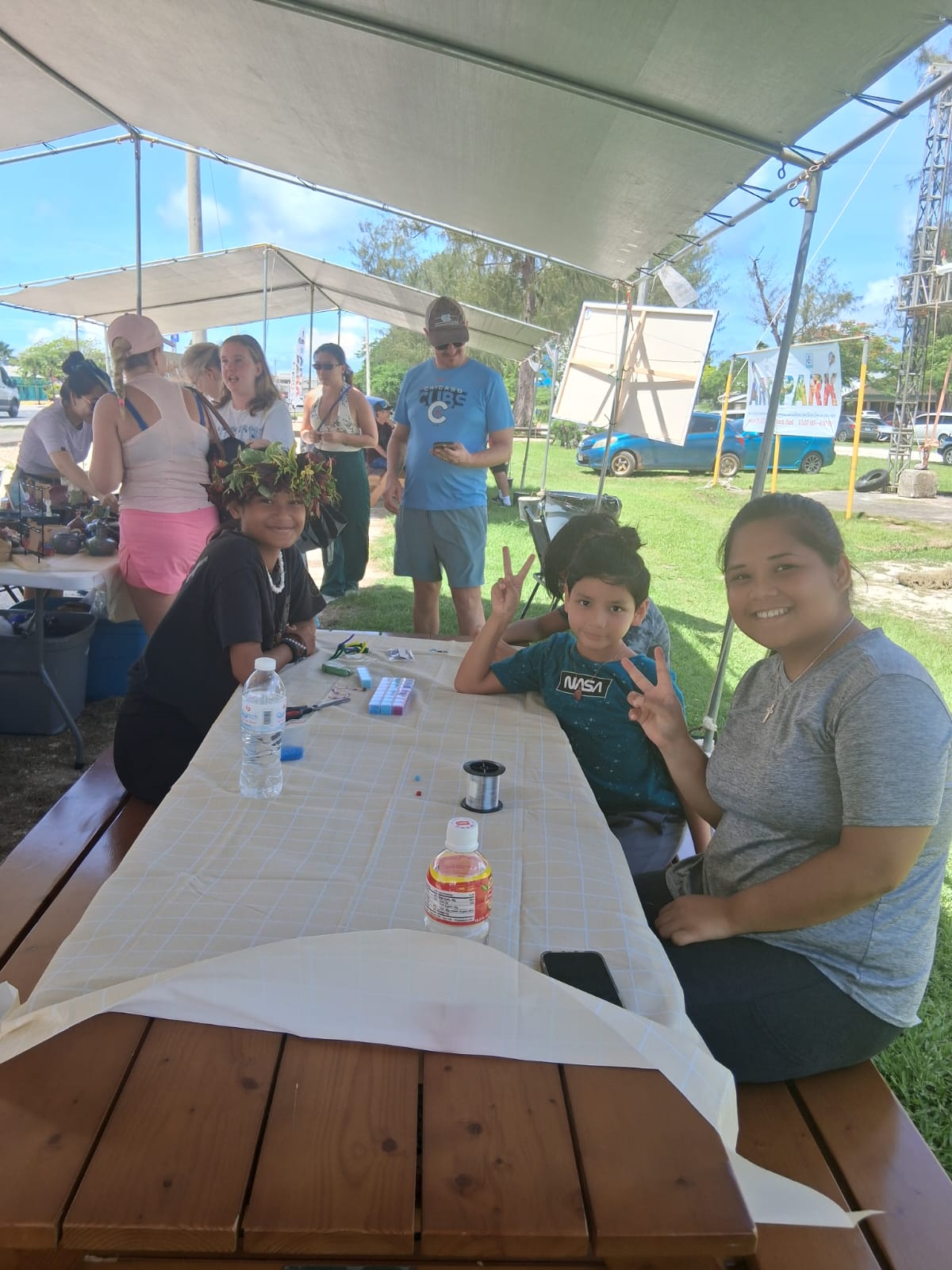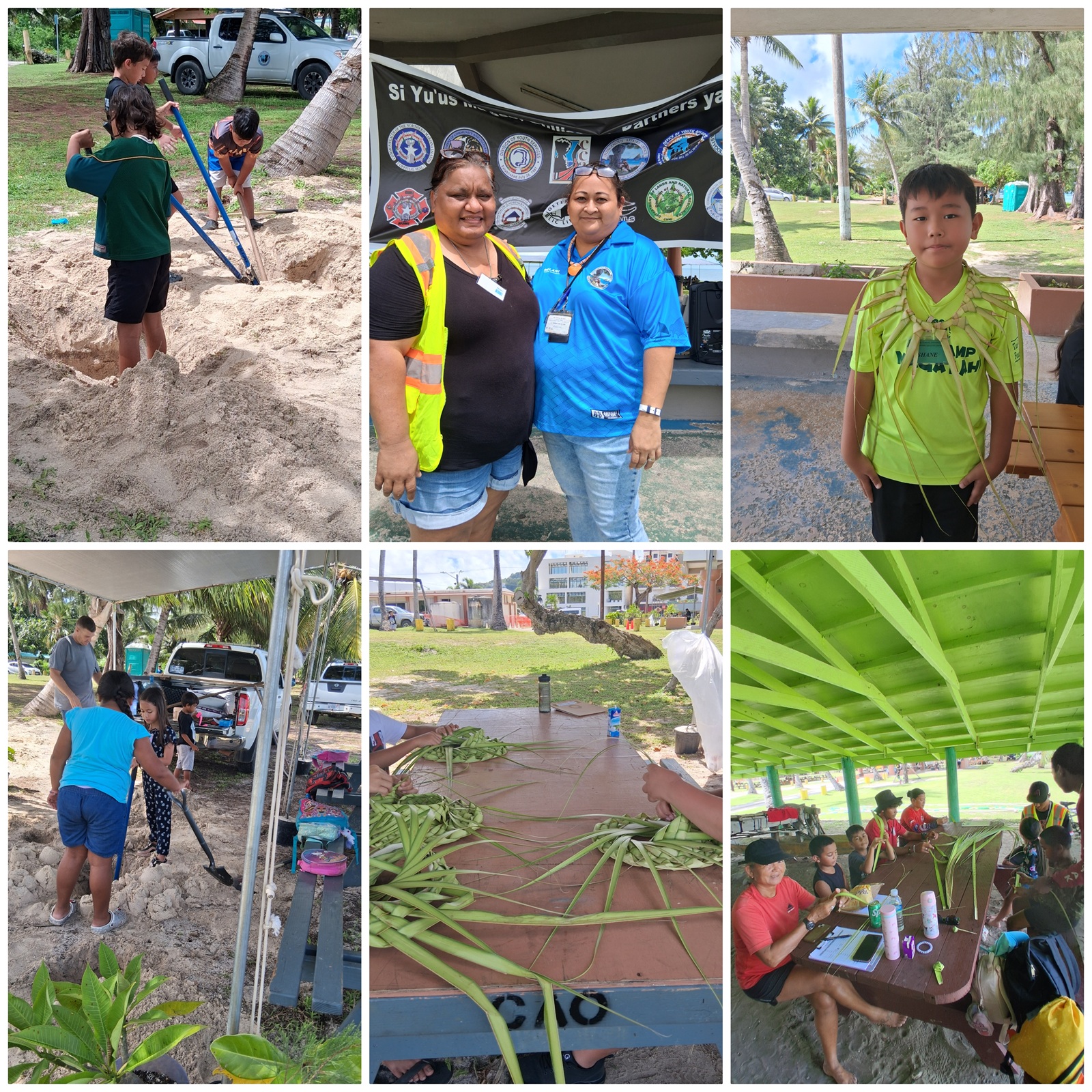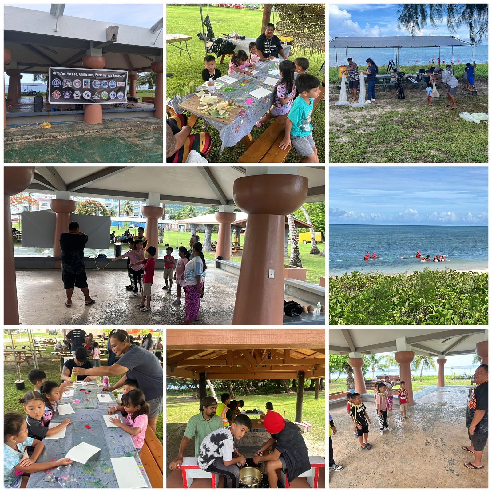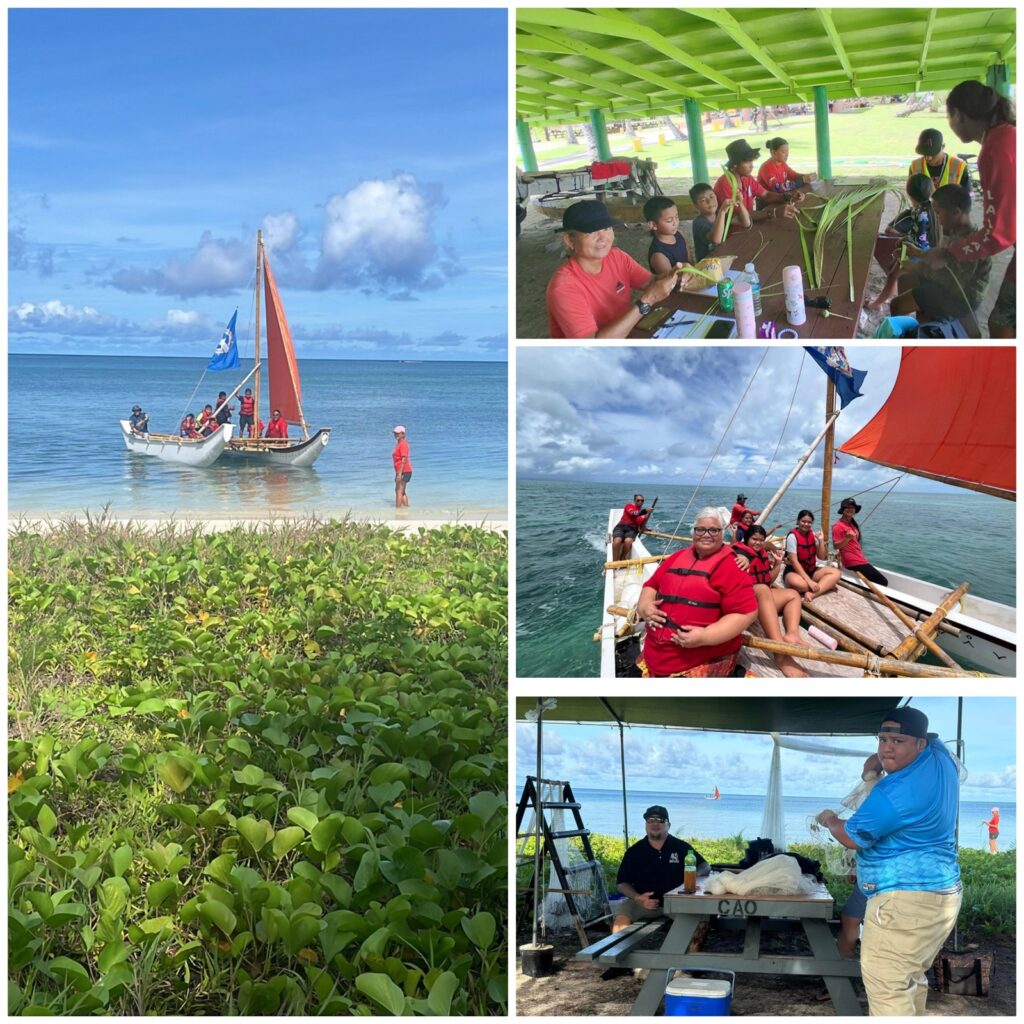1. Atupak Slingstone, 2. Chamorro Dances, 3. Joeten Kiyu Public Library, 4. Coconut Oil Making, 5. Swimming Monday and Wednesday with Lelek Rides Thursdays and Fridays. Our partners from Carolinian Affairs also joined the camp and brought in 6. Bead Lighatútúúr making, 7. Banana Painting, 8. Talaya Casting 9. Carolinian Dances.